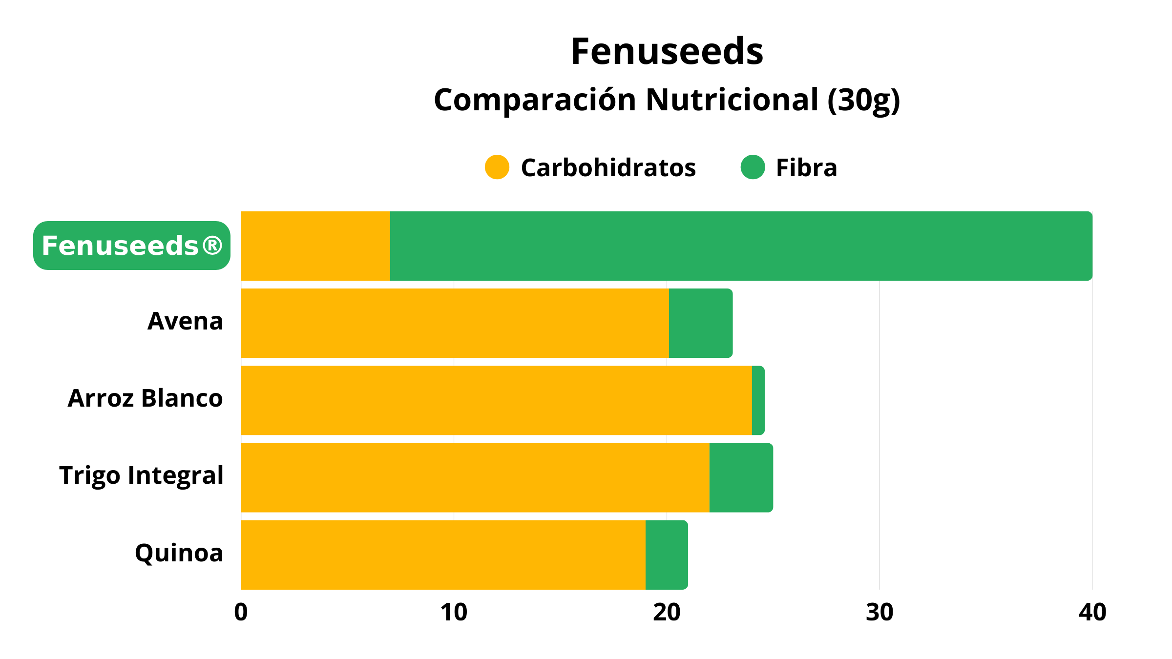 FenuSeeds se clasifica como un alimento bajo en calorías. 1 porción (30 g) = 30 calorías.